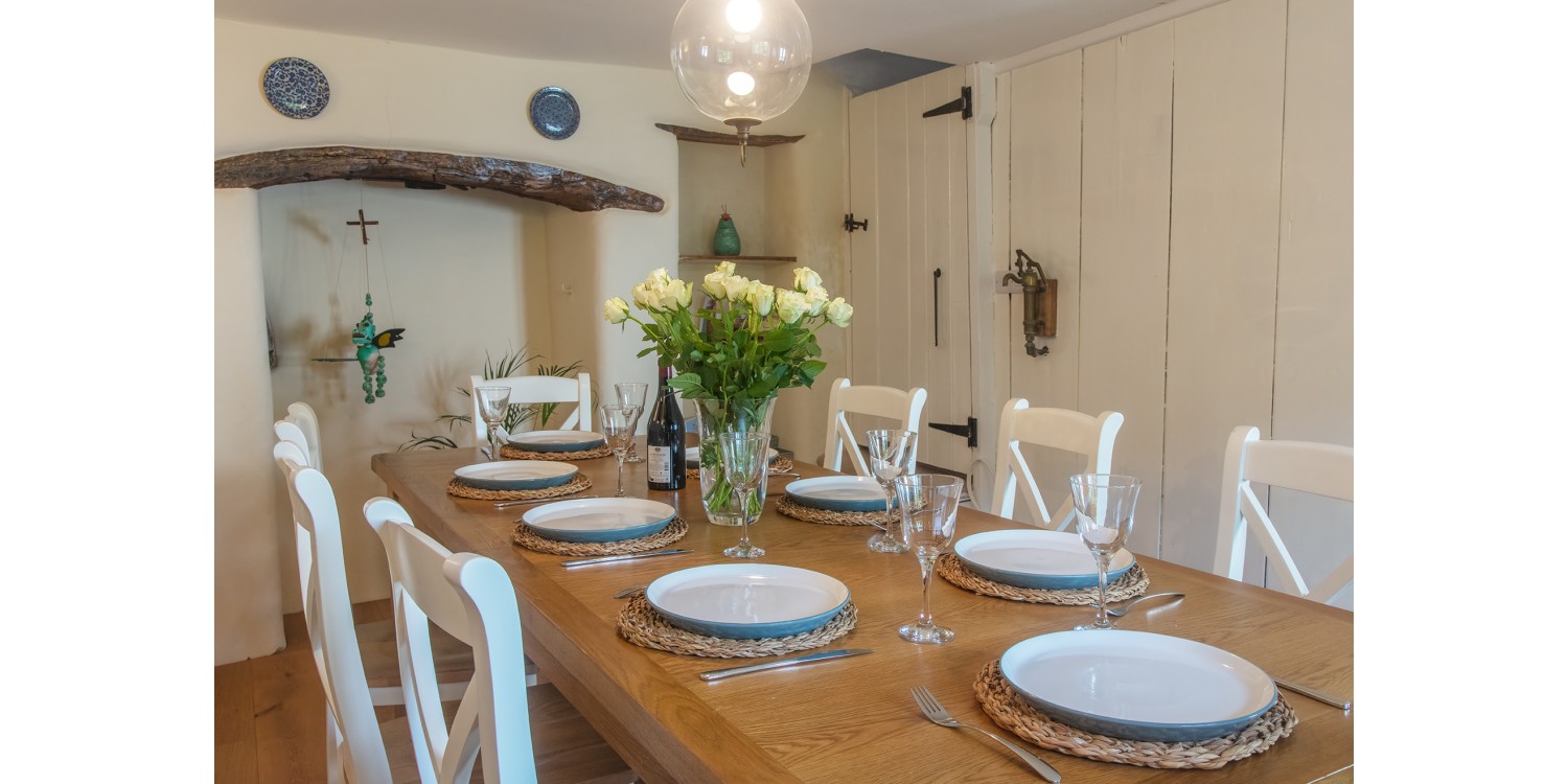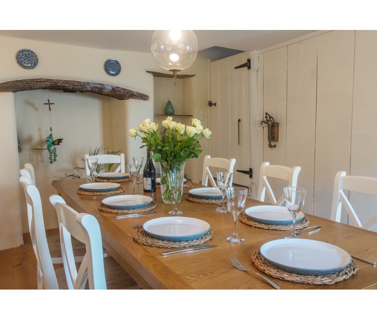 Vale Cottage is a 550-year-old thatched-roof Devon longhouse, less than ten minutes’ walk to the centre of the picture-postcard village of Croyde. It was traditionally built in 1470 of cob and lime render and is Grade II listed, to recognise and protect its historical significance. It has just been comprehensively but authentically renovated, in keeping with its age and character. So, it now perfectly combines 15th Century charm with 21st Century comfort and amenity.